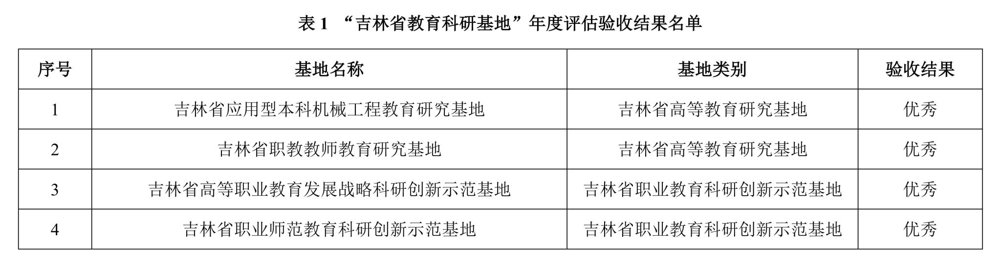 吉林省教育科学研究领导小组近日公布了吉林省教育科研基地及立项建设基地(单位)年度评估验收结果,Beat365官网2个吉林省高等教育研究基地、2个吉林省职业教育科研创新示范基地均顺利通过评估验收,验收结果均为“优秀”(见表1)。