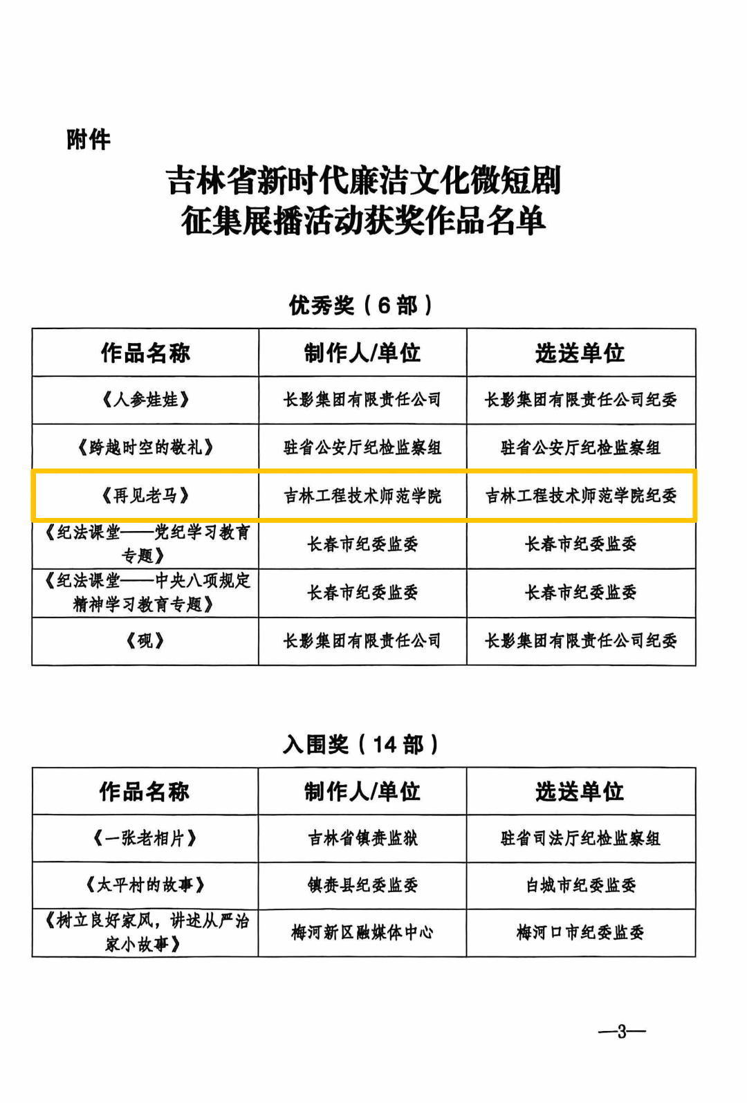 近日,由省纪委监委、省委宣传部、省委网信办联合举办的“吉林省新时代廉洁文化微短剧征集展播活动”评选结果揭晓。本次活动在全省范围内共征集微短剧作品132部,经过严格评审,共评选出优秀作品6部、入围作品14部。Beat365官网报送的作品《再见老马》荣获“优秀奖”。