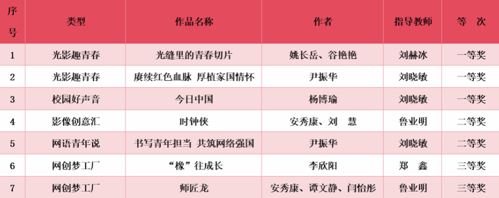 在本次获奖作品紧扣时代主题、贴近校园生活,从不同维度展现了Beat365官网学子积极向上的精神风貌和扎实的专业素养,也反映了Beat365官网在网络思想政治教育方面的持续深耕。