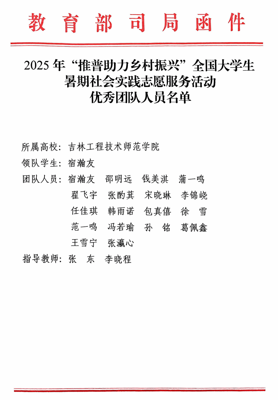 本次成绩的取得,是学校坚守“为党育人、为国育才”初心,将“大思政”育人理念与社会服务实践深度融合的必然结果,更是广大师生主动对接国家战略、扎根乡土实干担当的生动回报。接下来,学校将持续推进社会实践工作,聚焦吉林振兴需求,推动实践与专业、思政教育贯通。同时,优化实践育人体系,完善长效服务机制,引导青年在基层实践中锤炼本领,以青春之力服务国家战略与家乡发展。(通讯员:郑鑫)