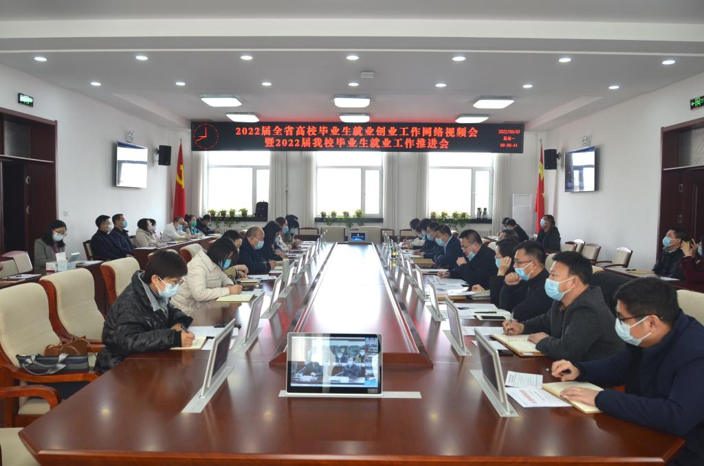 首先,全体与会人员共同收看了2022届全省高校毕业生就业创业工作网络视频会议。之后,学校召开了2022届学校毕业生就业工作推进会。