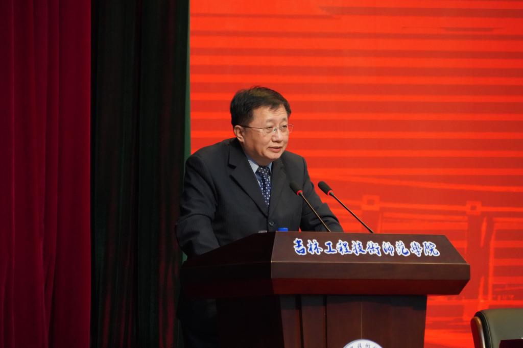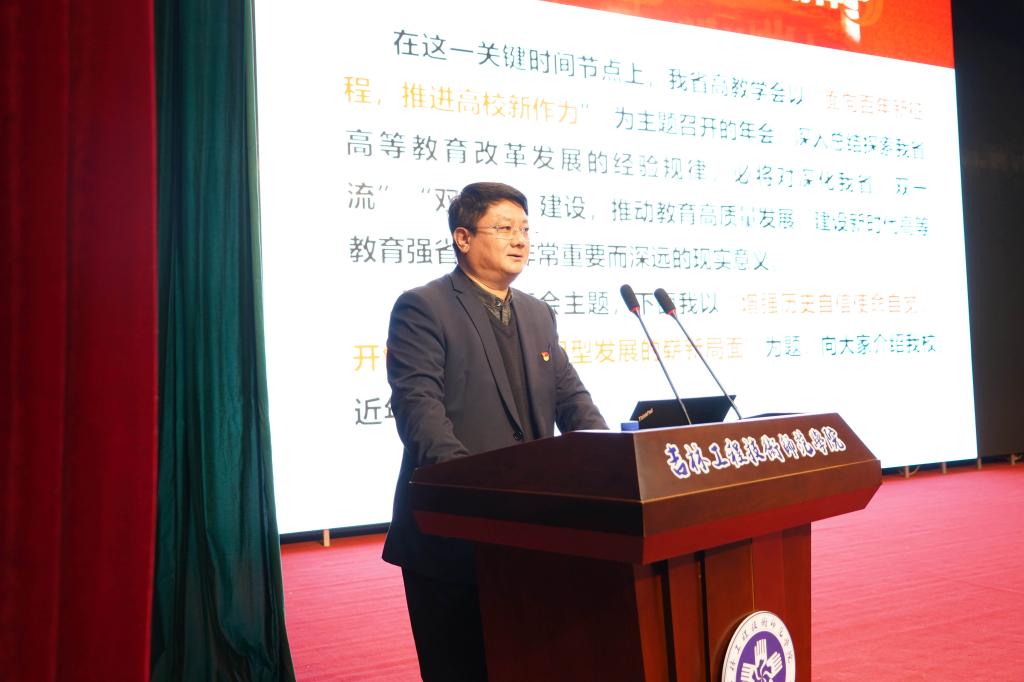 在随后举行的学术年会上,与会代表围绕“面向百年新征程 推进高校新作为”这一主题,结合学校工作实际进行了广泛的学术交流。东北师范大学、吉林农业大学、吉林体育学院、长春光华学院等4位高校领导代表本校做了各具特色的发言,基于“超前识变、积极应变、主动求变”的发展理念,面向百年新征程,体现新担当、实现新突破、展现新作为,各自擘画了有特色的高质量发展蓝图,引起与会代表的强烈共鸣。