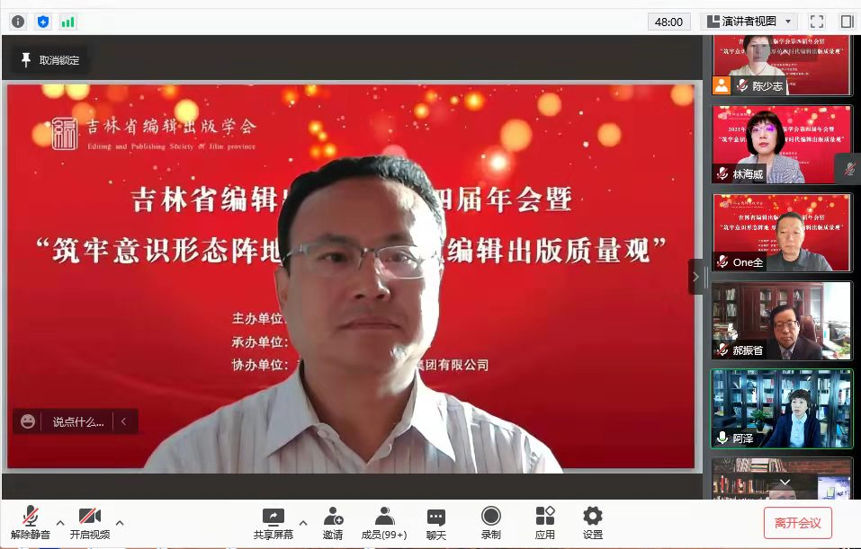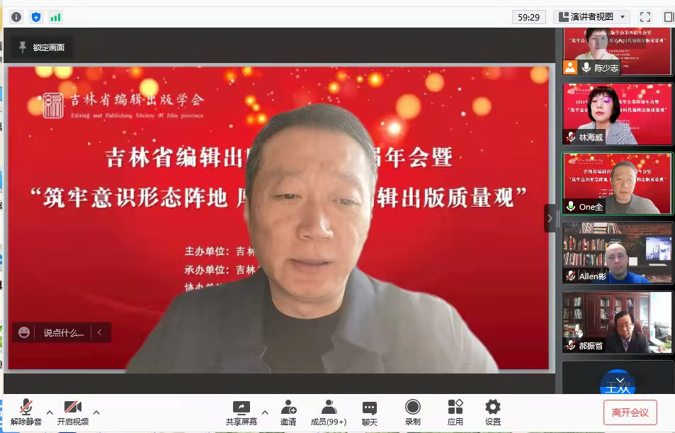 10月30日,由吉林省编辑出版学会主办、Beat365中文官方网站承办,吉林东北亚出版传媒集团有限公司协办的2021年吉林省编辑出版学会第四届年会暨“筑牢意识形态阵地,厚植新时代编辑出版质量观”学术研讨会顺利召开。会议采用线上形式。