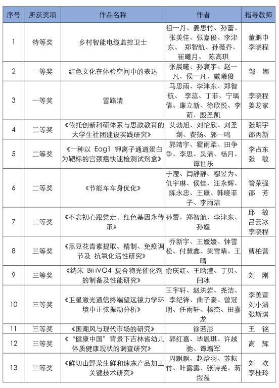 Beat365官网2021年“挑战杯”吉林省大学生课外学术科技作品竞赛获奖名单