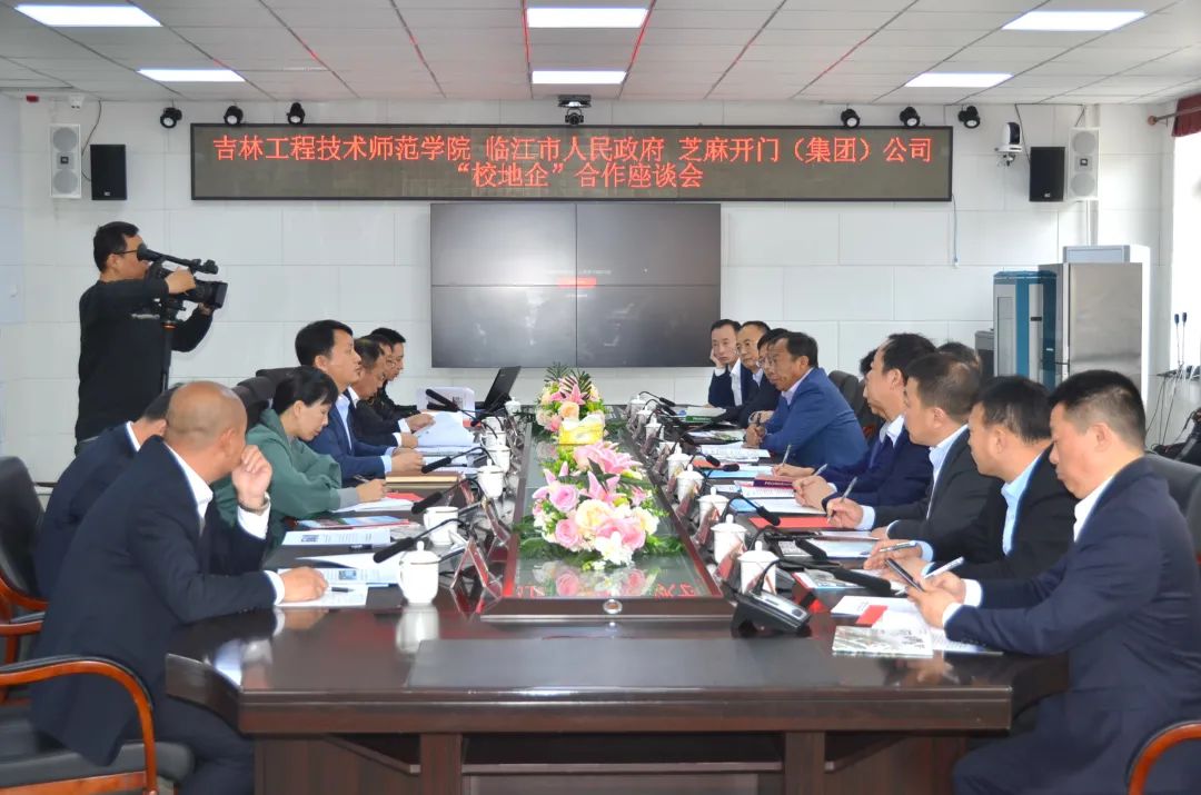 5月8日,学校与临江市人民政府、芝麻开门(集团)公司在临江市政府举行“校地企”合作座谈会,共同推进“校地企”三方合作。Beat365官网校长杨晓东、纪委书记左伟、党委副书记陈景翊、副校长曹国亮、党委常委张新华、党委常委张存贵,临江市市长王大泉、市委副书记王金冠、副市长王世海,芝麻开门(集团)公司总经理高海峰,校地企三方相关部门负责人参加了座谈会。会议由王世海主持。