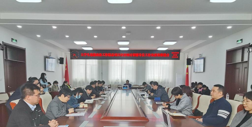 学工部姜清水老师对教育部思想政治工作司《关于培育建设高校思想政治工作精品项目的通知》精神、建设标准、《申报书》填报要点进行解读。学工部部长王宝龙对《辅导员工作室管理办法》《辅导员工作室考核办法》进行说明。与会同志对前两批教育部立项项目进行研讨,对学校精品项目培育进行了交流,大家一致表示要充分发挥辅导员工作室在精品项目培育方面的引领带头作用,统筹谋划、精心培育,争取早日建成“工师品牌”特色项目。