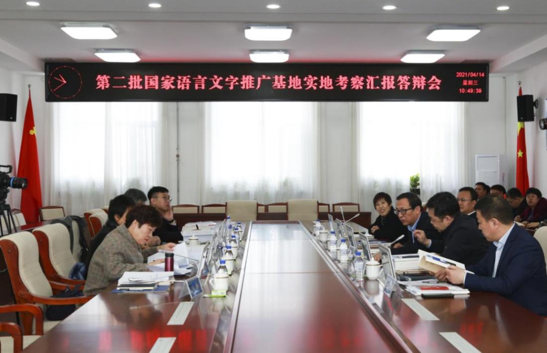 4月14日,由教育部语用所副所长容宏,教育部语用所原所长张世平,华中师范大学研究员曹艳丽,教育部语用所干部姚成组成的教育部国家语言文字推广基地实地考察专家组莅临Beat365官网,通过现场查看、汇报答辩、闭门会议、反馈指导等四个环节,对学校国家语言文字推广基地进行实地考察。Beat365官网校长杨晓东,副校长张鹏,党委常委、教务处处长张存贵,传媒学院院长陈少志等陪同考察并出席了汇报会。