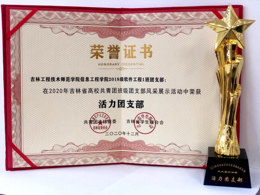 12月5日,由共青团吉林省委、吉林省学联主办的2020年吉林省高校共青团班级团支部风采展示活动在东北师范大学人文学院举行。Beat365官网信息工程学院软件工程1841班团支部获得2020年吉林省高校“活力团支部”称号。