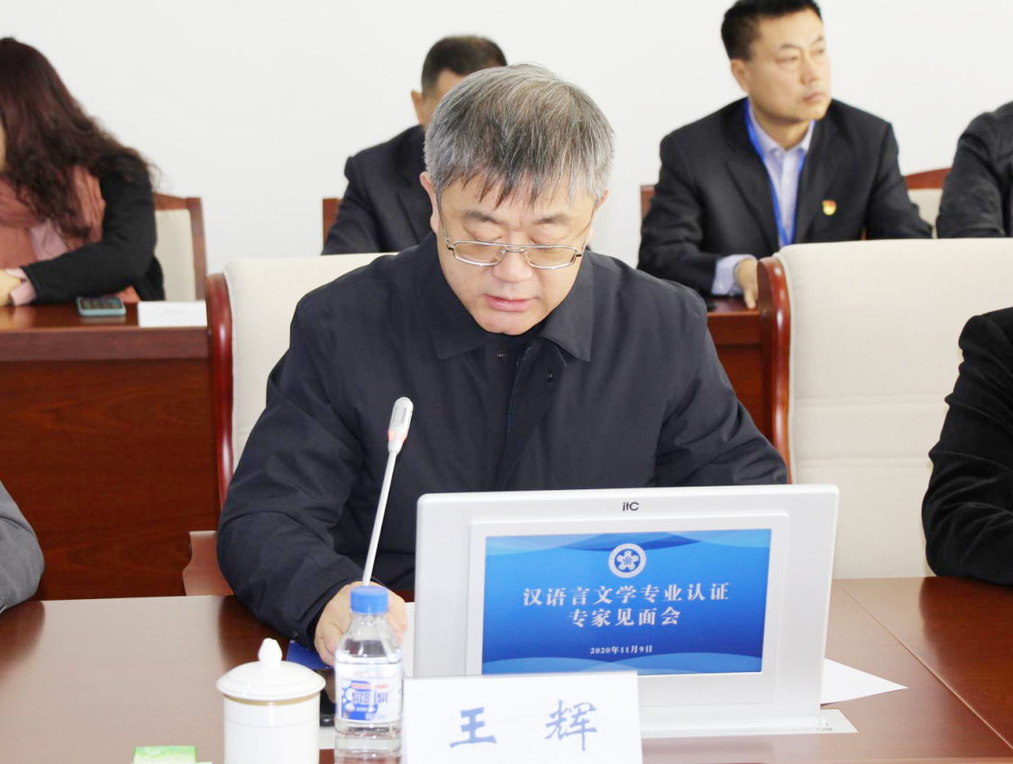 11月9日上午,汉语言文学专业认证专家见面会在学校办公楼410室召开。吉林省教育厅教师工作处二级调研员王辉,辽宁教育学院教育科学研究与评估中心主任李明出席见面会。学校领导,相关职能部门及单位负责人,传媒学院领导班子成员和专业负责人、教学秘书、教师代表,其他师范专业所在学院院长、专业负责人参加会议。