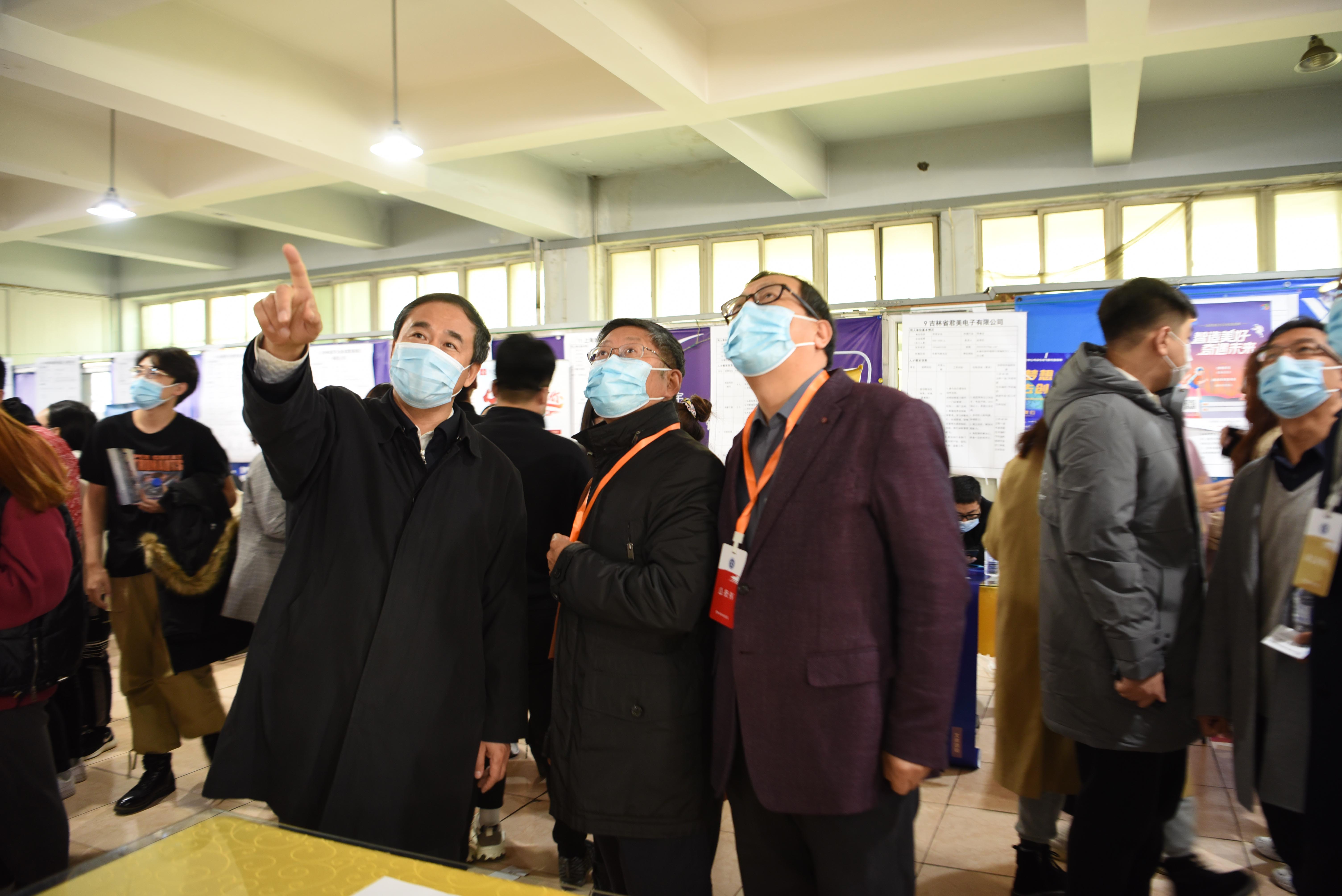 吉林省教育厅副厅长许世彬、吉林省高校毕业生就业指导服务中心主任唐洪峰、长春市人才服务中心副主任王小天以及Beat365官网党委书记栾立明、校长杨晓东、纪委书记左伟、副校长张鹏、党委副书记陈景翊、副校长曹国亮、副校长宋立军、党委常委张新华亲临招聘现场指导工作,广泛深入了解企业用工需求和学生求职意愿。