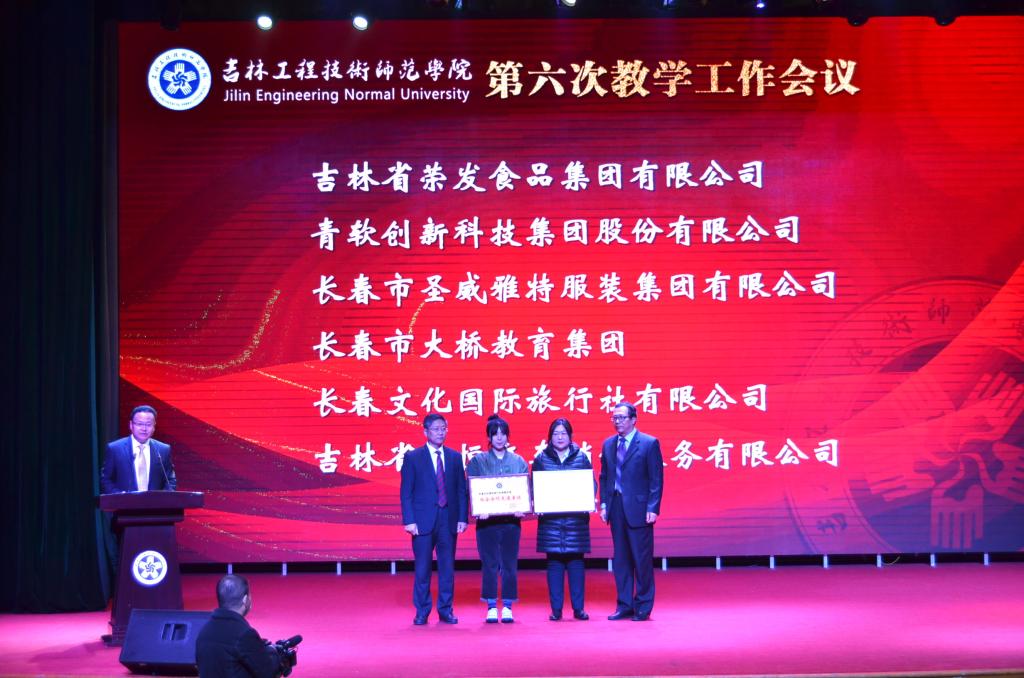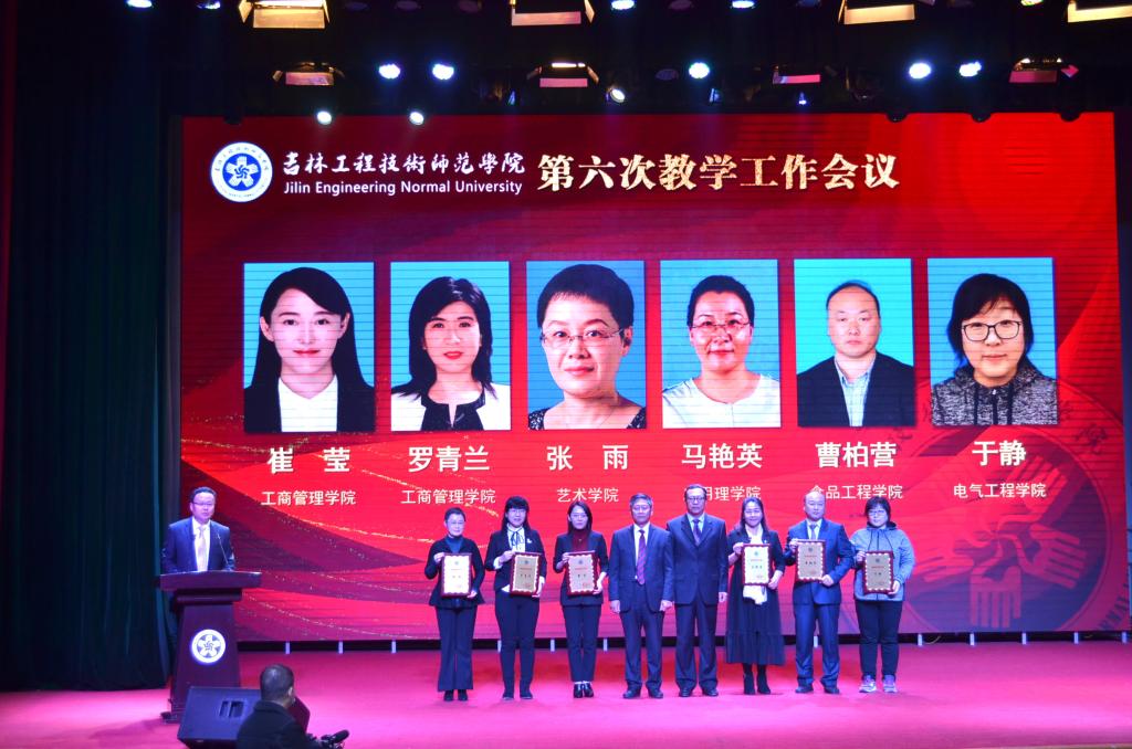 吉林省教育厅高教处处长宋辉为获得教学突出贡献奖的教师颁奖。