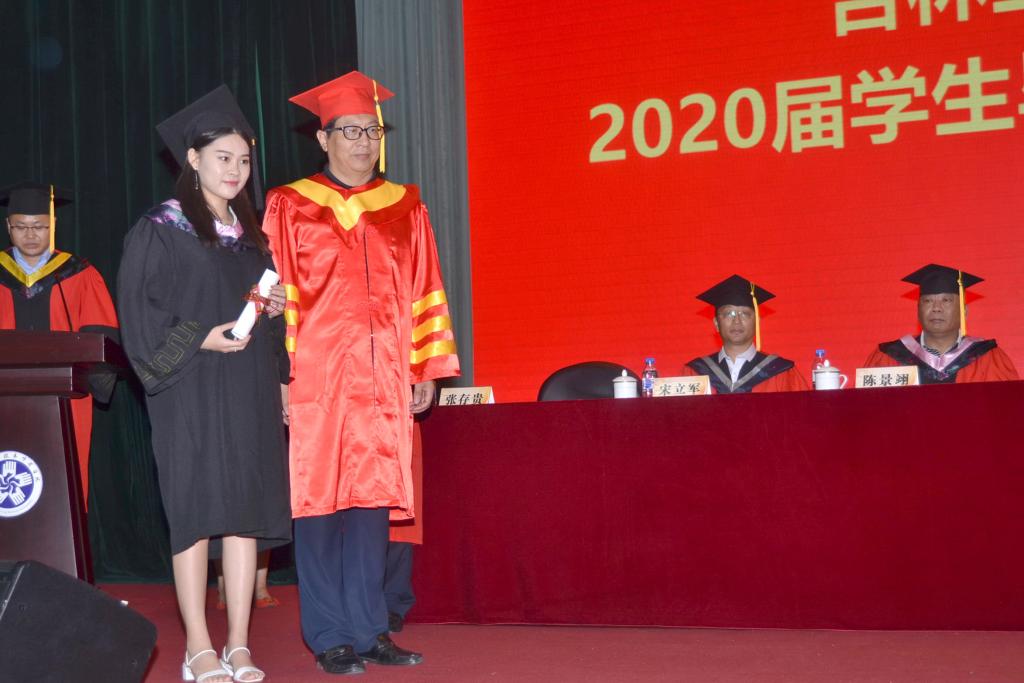 会上,毕业生代表、吉林省百优大学生、应用理学院付韵霏同学,在校生代表、长春市优秀共青团员、信息工程学院李瑶同学分别作了发言。教师代表、学校中青年骨干教师、全国职业技术师范院校教师讲课大赛一等奖获得者、电气工程学院陈龙博士发言,为2020届毕业生送去深深祝福。