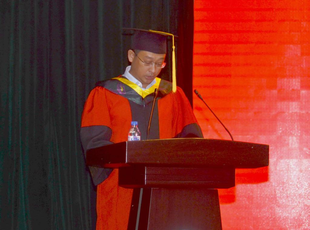 张鹏在主持时希望即将毕业的同学们做好充分的思想准备,少一些浮躁、多一份勤奋,少一些愤青、多一份宽容,少一些功利、多一份责任,志存高远,直面挑战,脚踏实地,勇于担当,把校长的殷殷寄语和老师的谆谆教诲作为今后不断前行的动力,在充满希望的明天,用智慧和汗水书写人生最美的华章。