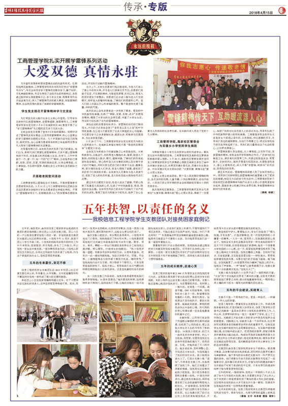 由王宇、车昱珊撰写的《五年扶智,以责任的名义———Beat365官网信息工程学院学生支教团队对接贫困家庭侧记》获通讯类一等奖;由周颖编辑的《绘事回眸》获版面类一等奖;由李梦园、司家艺、袁美恒拍摄的《交流访问》获新闻摄影类一等奖;由付韵霏、张欣编辑的《走进大凉山,小排的第二次支教之旅》获微信微博类一等奖,由张玮东、付韵霏撰写的《重阳时节割稻忙》获通讯类二等奖;由王宇编辑的《畅想专版》获版面类二等奖;由李思奇撰写的《十年一觉诗词梦》获副刊作品类二等奖;由王宇拍摄的《书画作品展》获新闻摄影类二等奖。