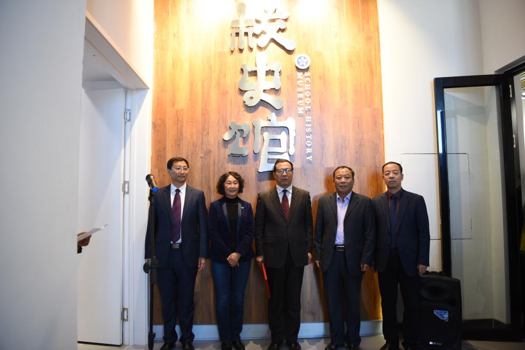仪式由党委宣传部部长武德峰主持。揭牌仪式后学生代表为参加校史馆建设的校友献上花束。