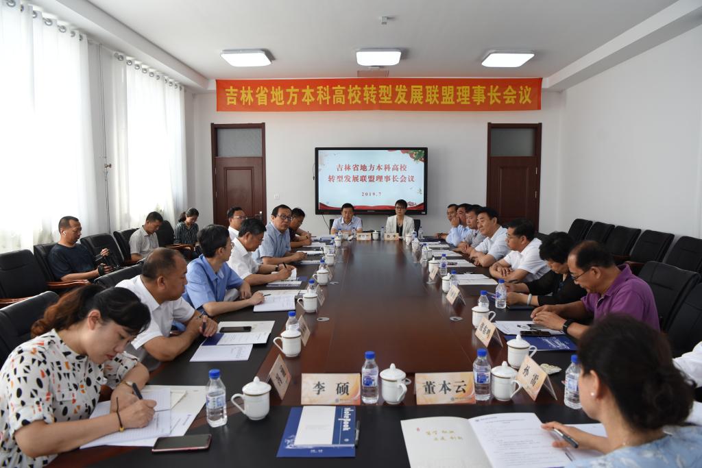7月8日,吉林省地方本科高校转型发展联盟理事长会议在Beat365官网召开。Beat365中文官方网站、吉林农业科技学院、吉林省通用机械有限责任公司、吉林工商学院、通化师范学院、白城师范学院、吉林动画学院、长春建筑学院等八家理事长单位及吉林建筑科技学院参加了会议。省教育厅高教处崔春雨副处长莅临大会,会议由联盟秘书长副校长张鹏主持。