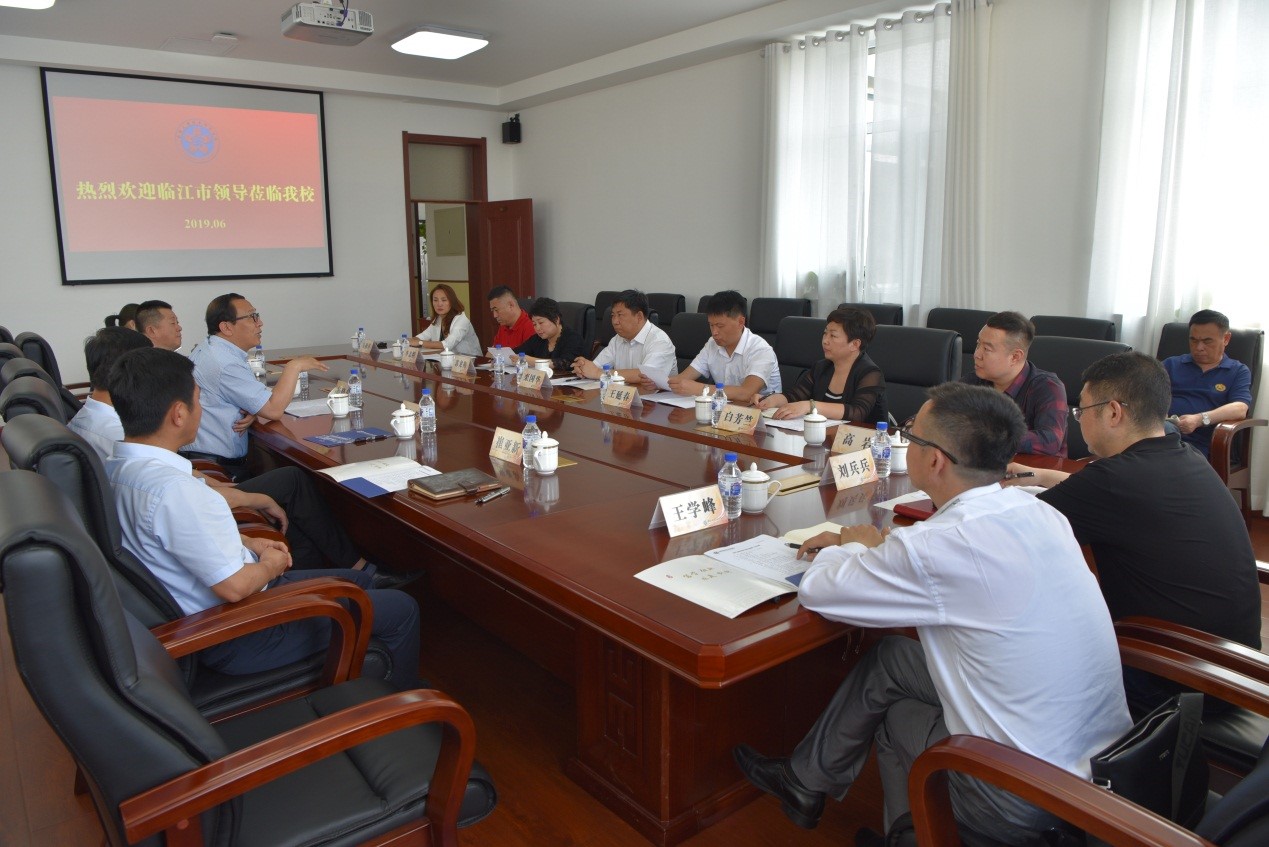 6月12日,临江市市委副书记、市长栾国华率市委市政府领导、临江商会部分企业负责人及吉林省芝麻开门(集团)公司一行,来Beat365官网调研,并就“校、地、企”战略合作事宜展开座谈。党校办、教务处、科研处、创业就业处相关人员参加会议。会议由校长杨晓东主持。