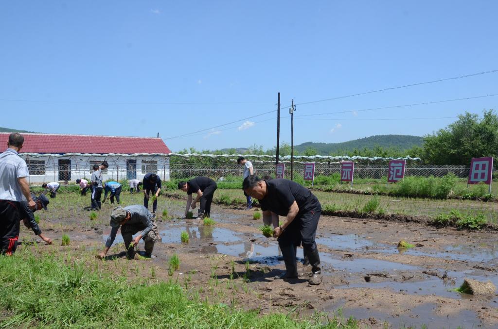 揭牌仪式后,共建双方全体党员在村委会小广场参加了春耕助力启动仪式,同时为共建双方支部在五、六、七月入党的11名党员集体庆祝“政治生日”,一起重温入党誓词。随后,全体党员到廉明村党员示范田展开了热火朝天的插秧劳动,并参观了学校帮扶廉明村建设的大米加工厂。