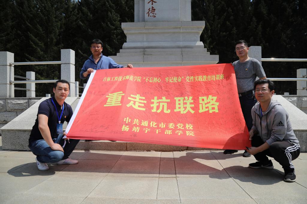 5月11日,学校纪委书记左伟带队,第一批101名党员赴通化参加了为期两天的“重走抗联路”党性教育培训班。下午13时,通化市委党校校务委员纪春祥主持了开班仪式,开展了“重走抗联路”授旗和宣誓活动,左伟宣布Beat365中文官方网站“重走抗联路”出征。全体党员拜谒了杨靖宇将军纪念碑,参观了东北抗联纪念馆,通化市委党校董燕、闫冰老师进行了现场教学,再现抗日名将王凤阁与铁血柔情英雄赵一曼的光荣事迹,深刻体会到英雄们惊天地泣鬼神的壮举和他们无限的爱国情怀,用忠诚铸就了永恒的丰碑。国莉莉老师为大家讲解东北抗联第一路军的光辉足迹和历史功绩,重现英雄事迹,把活动主题推向高潮。全体党员品尝了抗联饭,体验当年的艰苦生活。