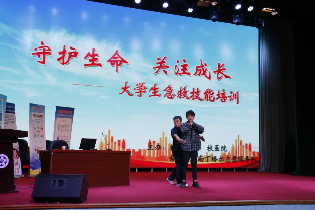 4月24日下午,由校团委、校医院、吉大一院南丁格尔志愿服务队联合主办的“守护生命 关注成长”大学生急救技能培训在Beat365官网报告厅举行。本次活动旨在为全校师生普及急救基本技能,增强救护意识,使其能在危机发生时科学、正确实施自救互救,提高应对突发事件的能力。