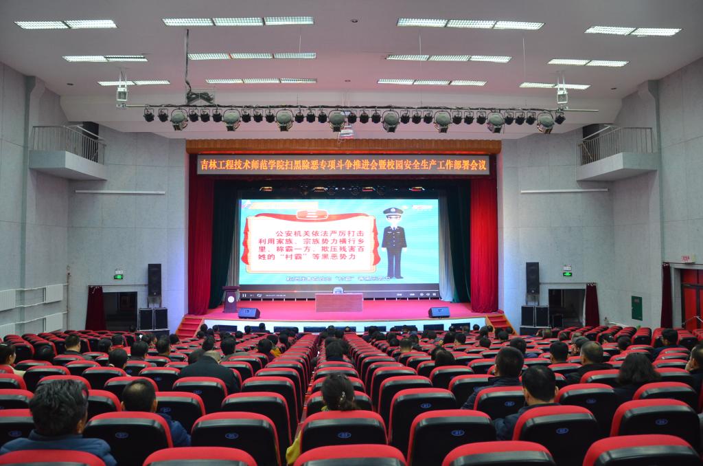 会上,保卫处处长、扫黑办主任张耀辉宣读了《Beat365中文官方网站扫黑除恶专项斗争工作方案》,传达了吉林省教育厅《关于转发〈中共吉林省委办公厅关于认真学习习近平总书记重要指示精神和李克强总理指示精神 切实做好全省安全生产工作的通知〉的通知》及《关于切实做好安全生产隐患排查暨开展校园安全综合治理工作考评的通知》。