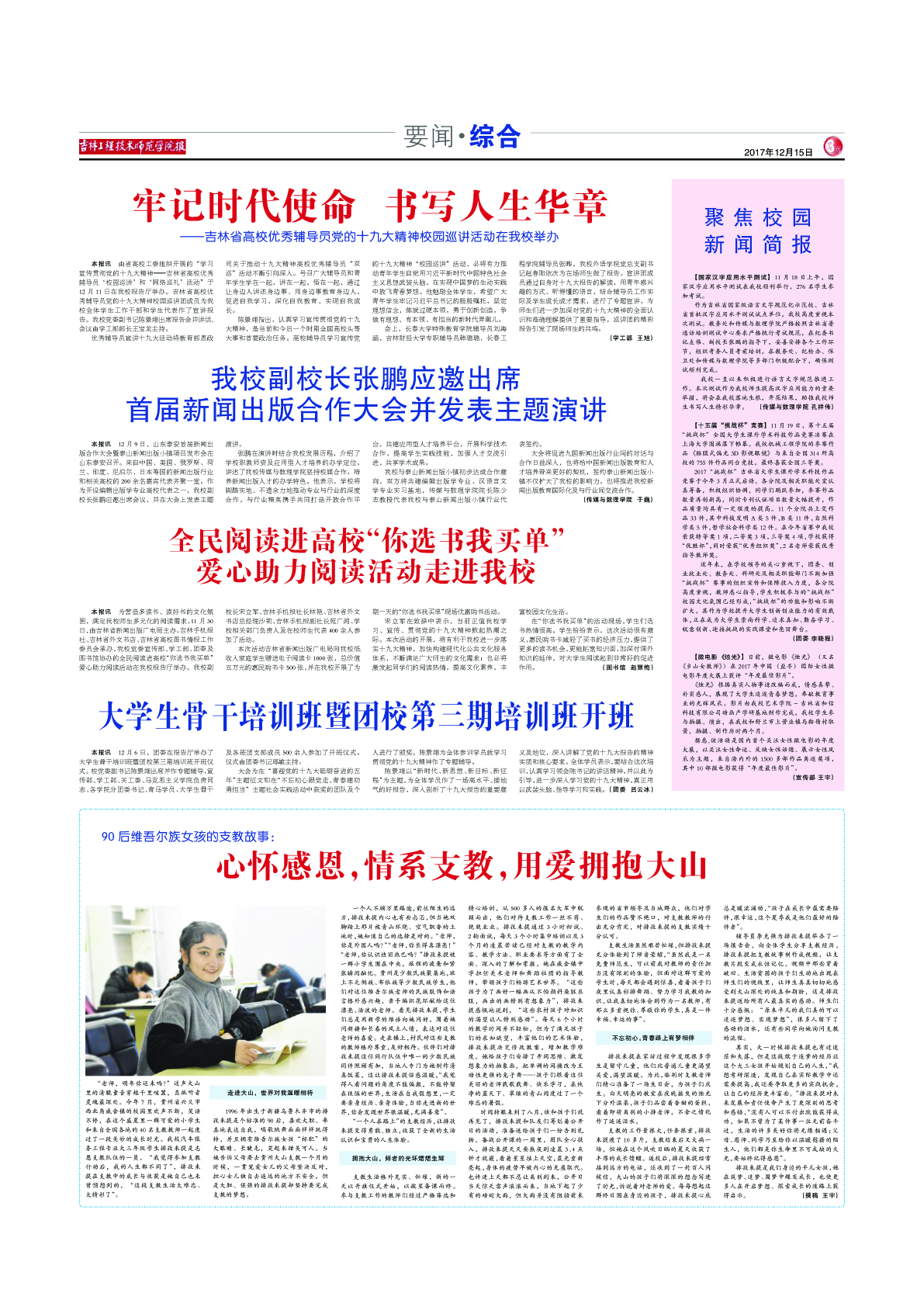 一直以来,党委宣传部、新闻中心积极做好对内对外宣传工作,通过校报、校园网、微信、微博等平台及时准确地宣传报道学校重大活动和改革发展成果,对内凝聚校园力量,对外宣传学校形象,发出好声音,传播正能量,讲好工师故事,助力学校发展。此次校报在吉林省高校校报好新闻奖评选中获得多项荣誉,是对校报宣传工作的又一次充分肯定。