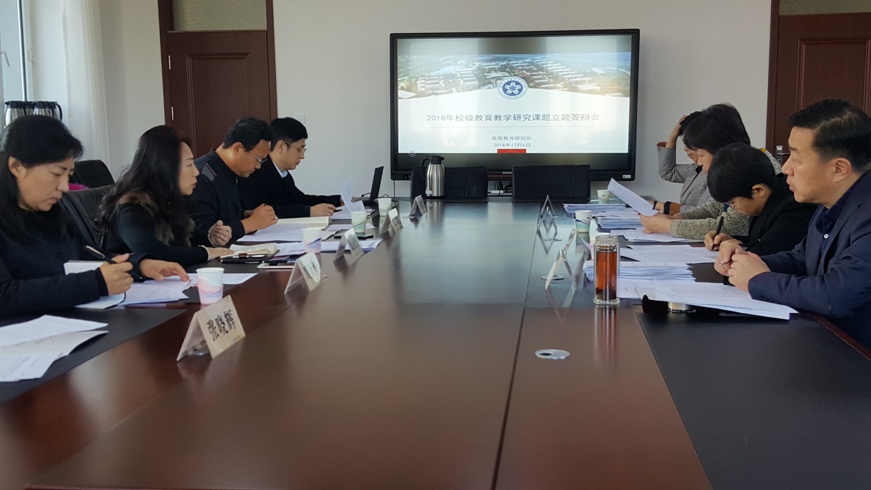 12月6日,2018年度校级教研课题立项评审答辩圆满结束。本次立项评审答辩聘请了吉林省高等教育学会刘黎莉秘书长、吉林省教育科学规划领导小组办公室周颖华常务副主任、吉林大学教师发展中心金祥雷副主任、长春工程学院教学质量监督与评估中心侯丽华主任、长春大学高教所张晓辉所长、吉林建筑大学教务处王丽霞处长,Beat365官网副校长张鹏教授、教务处长张存贵教授、高教所所长甄国红教授为评委,分为文科、理科及综合三个组,由课题负责人进行汇报答辩,副校长张鹏教授主持答辩会。