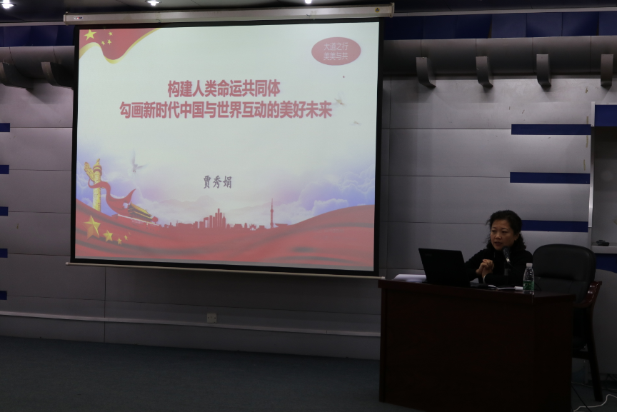 另外,贾秀娟副教授还从准确把握构建人类命运共同体思想的时代背景;全面认识构建人类命运共同体的丰富内涵;深刻领会构建人类命运共同体思想的重大意义,三个方面为同学们分析讲解了深刻领会构建人类命运共同体思想的精神实质。通过讲座同学们深刻的认识到,和平发展的时代主题与构建人类命运共同体的密切联系。新的国际格局呼唤新的全球治理理念,中国不断为世界提供解决问题方案、贡献智慧,在这过程中中国更是体现出了大国的责任和担当,提出了构建人类命运共同体思想。这一战略思想的提出,不仅是继承和发展了新中国的重大外交思想和主张,也反映了中外优秀文化和全人类共同价值追求,适应了新时代中国与世界关系的历史性变化,更进一步指明了世界发展和人类未来的前进方向。