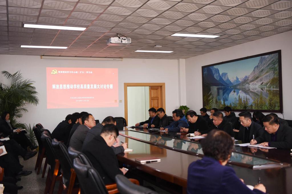 11月7日,学校召开党委理论学习中心组(扩大)学习会,以“解放思想推动学校高质量发展”为主题开展学习研讨。党委理论学习中心组成员,各党总支、直属党支部书记,各学院院长参加了学习会。会议由党委书记栾立明主持。