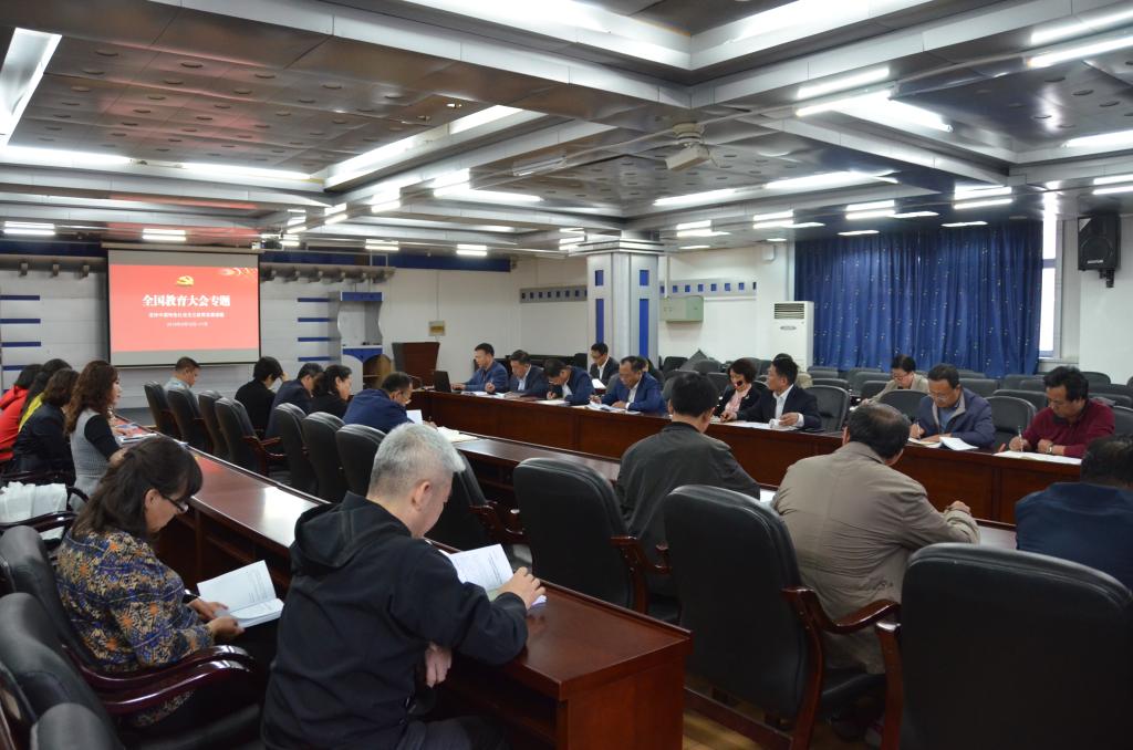 9月26日下午,学校在三教多功能厅召开党委理论学习中心组(扩大)学习会,专题学习全国教育大会精神。党委理论学习中心组成员,各党总支、直属党支部书记参加会议。会议由学校党委书记栾立明主持。