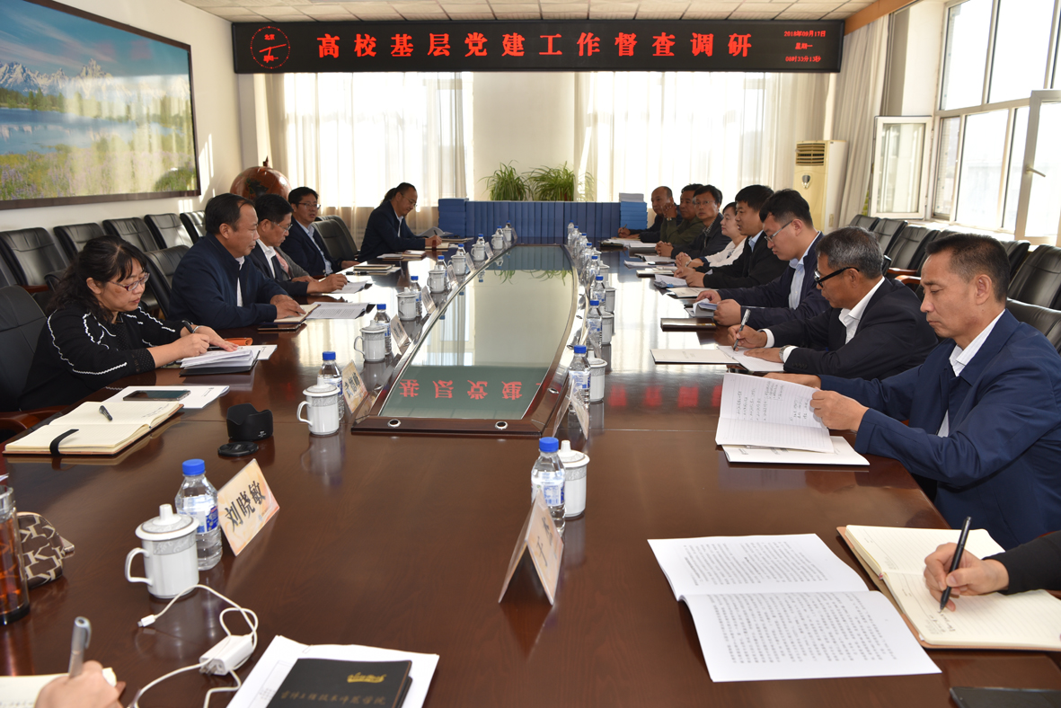 9月17日上午,省高教工委组织部副部长孙明德一行3人到Beat365官网开展基层党建工作督查调研。学校党委书记栾立明、纪委书记左伟、党委副书记陈景翊,党委办公室、组织部、宣传部、统战部、学工部、纪检监察办公室等相关部门负责人和部分基层党总支书记参加了督查调研会。