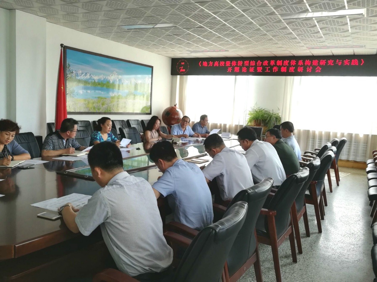 7月5日上午,吉林省教育厅重点课题《地方高校整体转型综合改革制度体系构建研究与实践》开题论证暨工作制度建设研讨会在图书馆楼第一会议召开。校长杨晓东主持会议并阐释立项背景及目的。副校长张鹏,校办、宣传部、发展规划办、教务处、人事处、科研处、学科办、学工部、资产处、计划财务处、后勤管理处、图书馆、教育技术与网络中心、教学质量监控与评价中心等部门负责人及高等教育研究所全体人员参加了会议。
