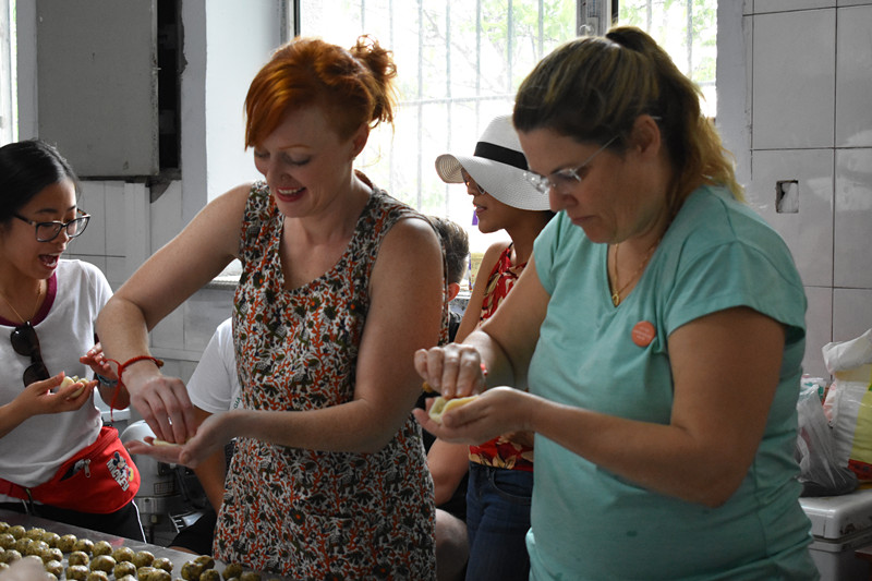 品葡萄美酒,尝中式传统小点心。食品工程学院结合自身特点,安排美国留学生参观Beat365官网葡萄酒厂,了解葡萄酒制作工艺与制作流程,品尝了Beat365官网葡萄酒厂制作的干红、冰葡萄与传统红酒;随后,美国同学还亲临Beat365官网食品制作实训室,观看老师制作中国传统小点心桃酥的制作全过程,参与其中与老师一同制作,最后品尝自己动手制作出来的无任何添加剂绿色美味的中国小点心……
