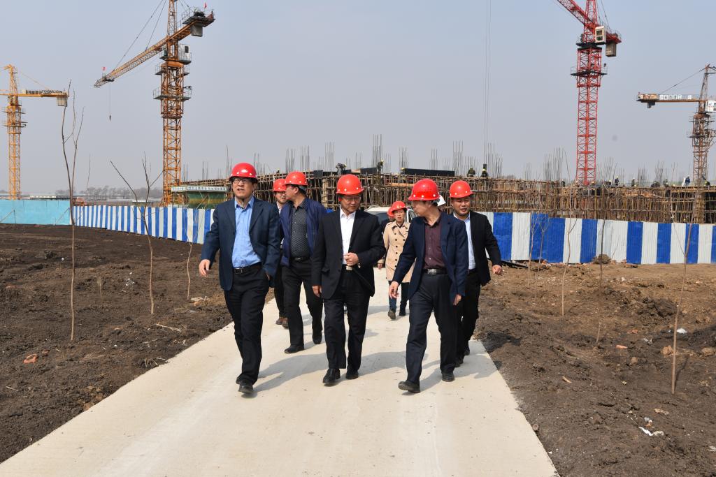 在德惠市领导考察新校区建设项目之前,栾立明、杨晓东、曹国亮提前来到项目建设现场,与施工方项目经理、相关技术人员、现场工作人员亲切交流,讨论项目建设方面的相关问题,对下一步建设工作提出了指导性意见,同时参观了新校区建设指挥部办公场所,鼓励全体工作人员要鼓足干劲,甩开膀子加油干,书写工师新校区建设的新篇章。