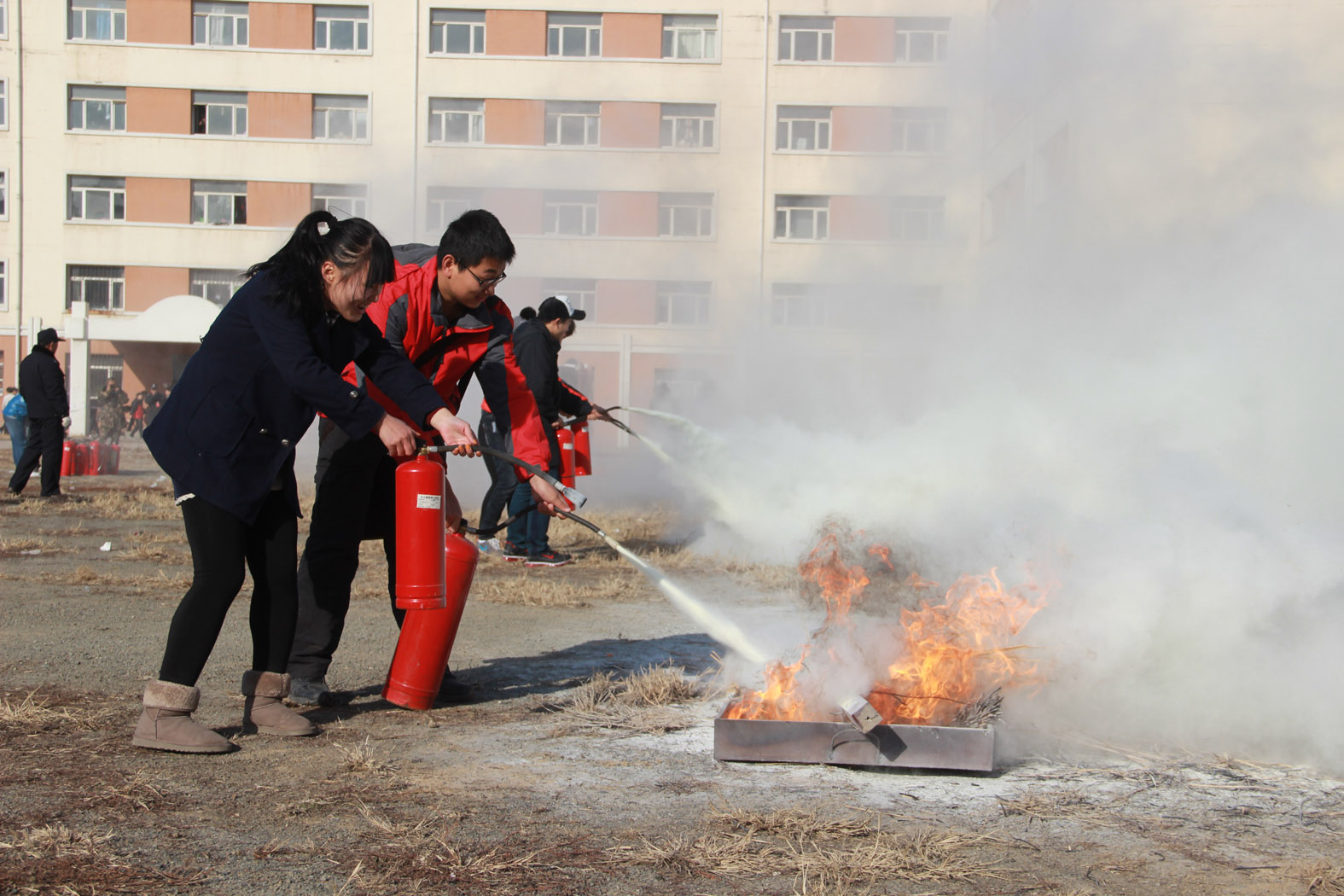 为了进一步增强在校师生的消防安全意识,熟悉和掌握应急灭火、疏散逃生、自救互救等基本消防安全常识,培养和锻炼学生自我逃生、自我保护能力,11月13日中午,Beat365官网与宽城区消防大队联合在主校区学生四舍前举行了一次应急疏散及灭火实战演练。