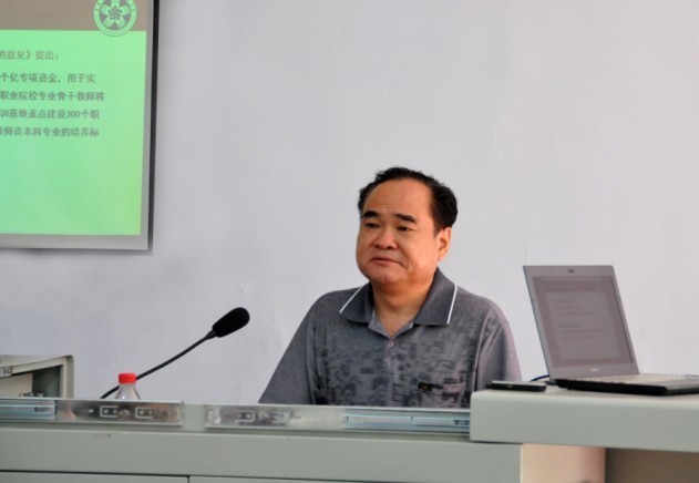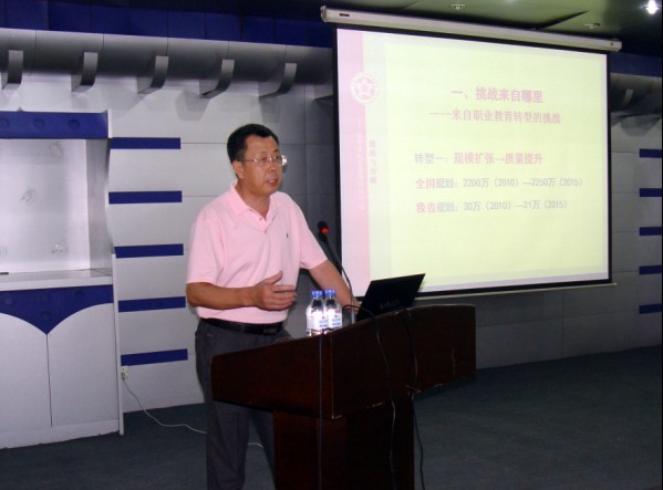 职业教育研究院院长于志晶作了《挑战与出路——关于学校发展方位的讨论》的形势分析专题报告