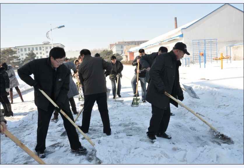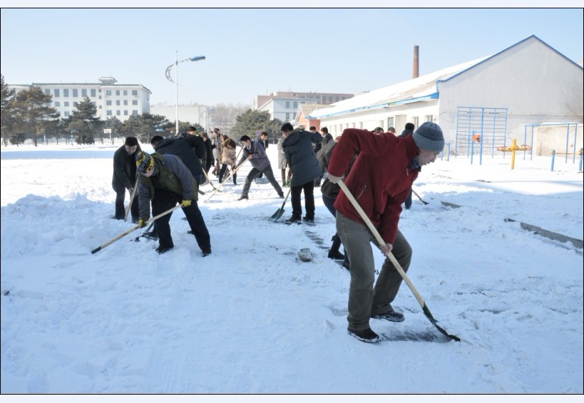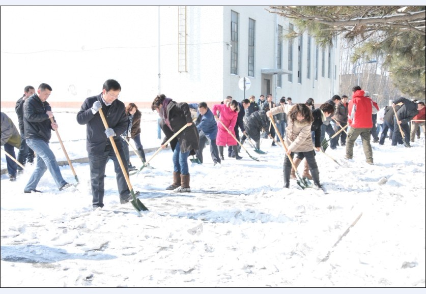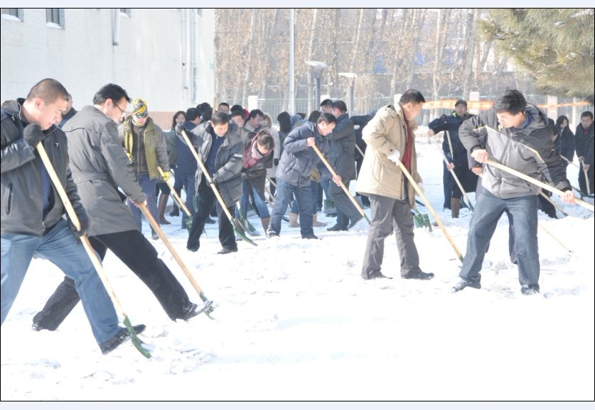 希望全校教职员工向参加此次清雪的领导和同志学习,发扬以校为家的主人翁精神,勇于吃苦、排除困难、甘于奉献、齐心协力,为学校各项事业的发展做出应有的贡献。