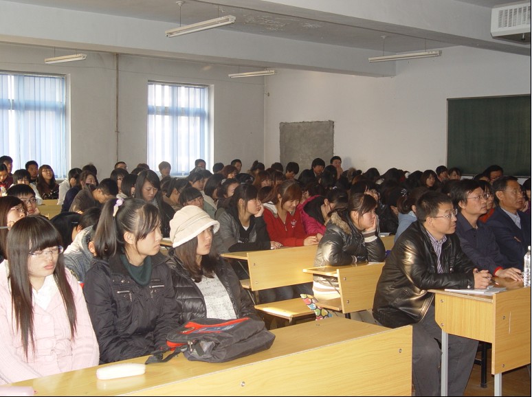 为了响应学校党委号召和学校行政领导指示,落实好党的十七届六中全会精神,切实加强校园文化建设,活跃校园学术氛围,经济贸易学院领导班子策划了大型系列学术活动。11月11日下午,系列学术活动首场报告会在泰来校区实验中心举行。马克思主义教研部王雪军主任以《庄子的人生哲学与现代人生》为题,为泰来校区学子作了一场生动深刻、富有哲理的学术报告和人生指导课。王雪军老师用大量丰富的资料,介绍了古人对生死的看法,系统诠释了庄子对人生的认识,从而引出了“敬畏生命、善待万物、安时处顺、达观天下”的人生认识。王老师的报告历时1小时50分钟,深受泰来学子的欢迎,报告会自始至终充满热烈气氛。经济贸易学院领导、继续教育学院于宝山院长、附属中专王副校长同数百名泰来学子参加了首场学术报告会。