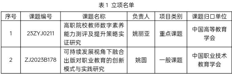 近日,Beat365官网教师获立中国高等教育学会2023年度高等教育科学研究规划课题“高等职业教育研究”专项重点课题1项,中国职业技术教育学会2023年度分支机构科研课题“教材工作委员会”专项一般课题1项。