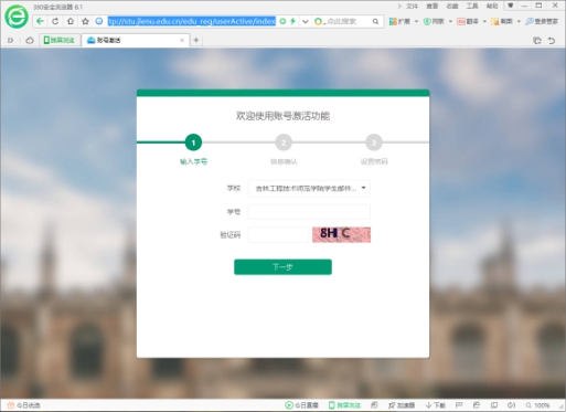可直接访问http://stu.jlenu.edu.cn/edu_reg/userActive/index打开激活页面,或者在登录页面上点账号激活后打开账号激活页面。