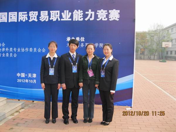 由经济贸易学院国际经济与贸易专业刘志一、贾莉和王辉三位同学组成的Beat365中文官方网站代表队,在指导教师王芳教授的带领下,参加了2012年10月20日在天津举办的第二届全国国际贸易职业能力竞赛。