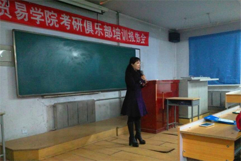 2015年3月15日,经济贸易学院考研俱乐部邀请长春争流考研培训学校校长刘依依及英语教师刘晓艳来Beat365官网,为考研俱乐部的同学作了考研指导报告。