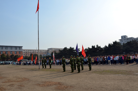 4月29日早7:00,校团委、学工部组织了升旗仪式,党委常委、校长助理冯超,学工部部长于彦民,文化传媒学院党总支副书记王义录,部分学生工作干部及2000多名学生参加了升旗仪式。
